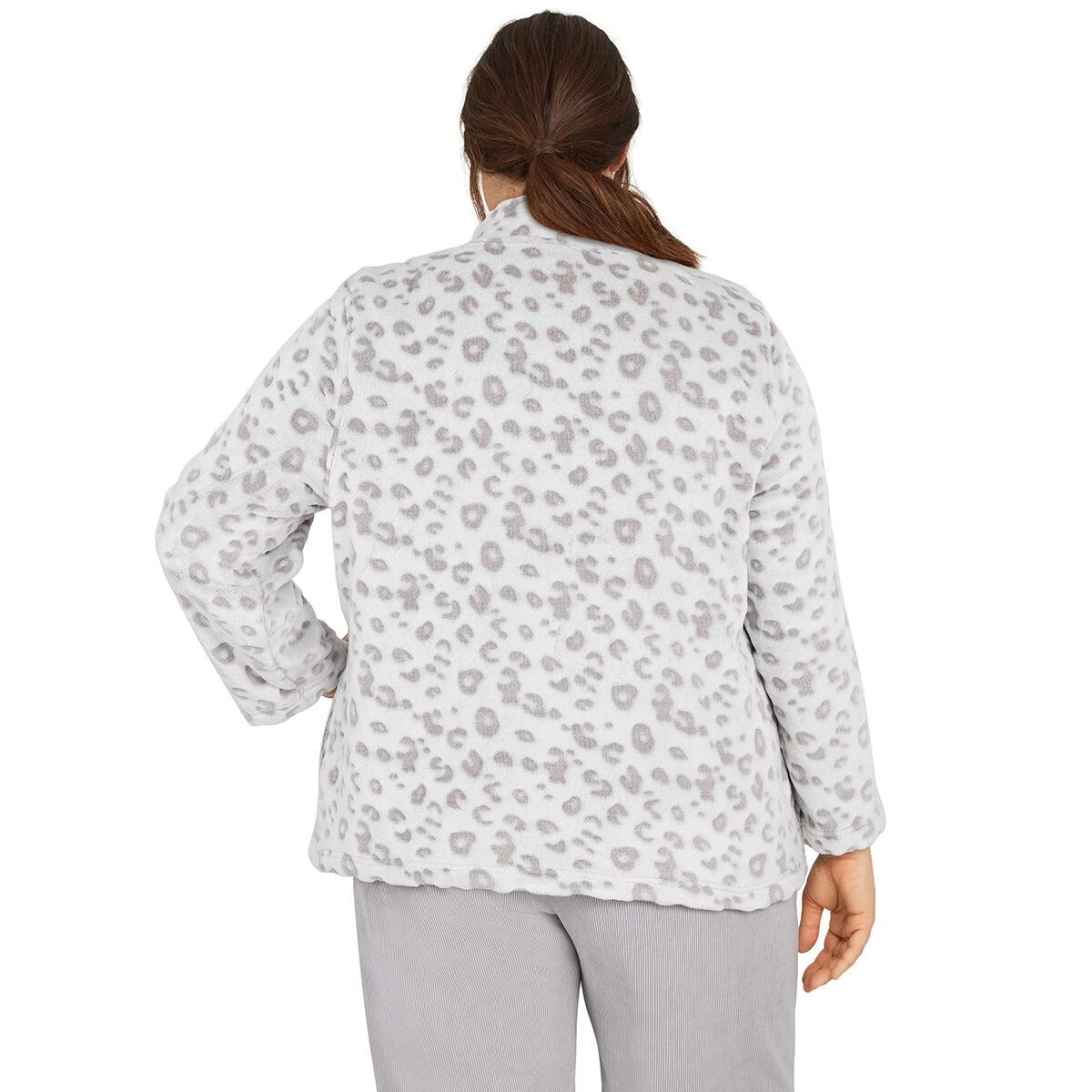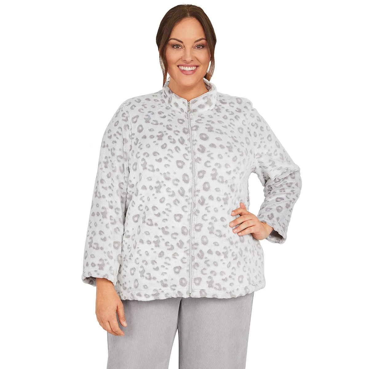 The Plus Size Alfred Dunner Stonehenge animal sculpted fur jacket will keep you cozy while looking trendy. Features long sleeves, a frontal zip closure, and a funnel neck.