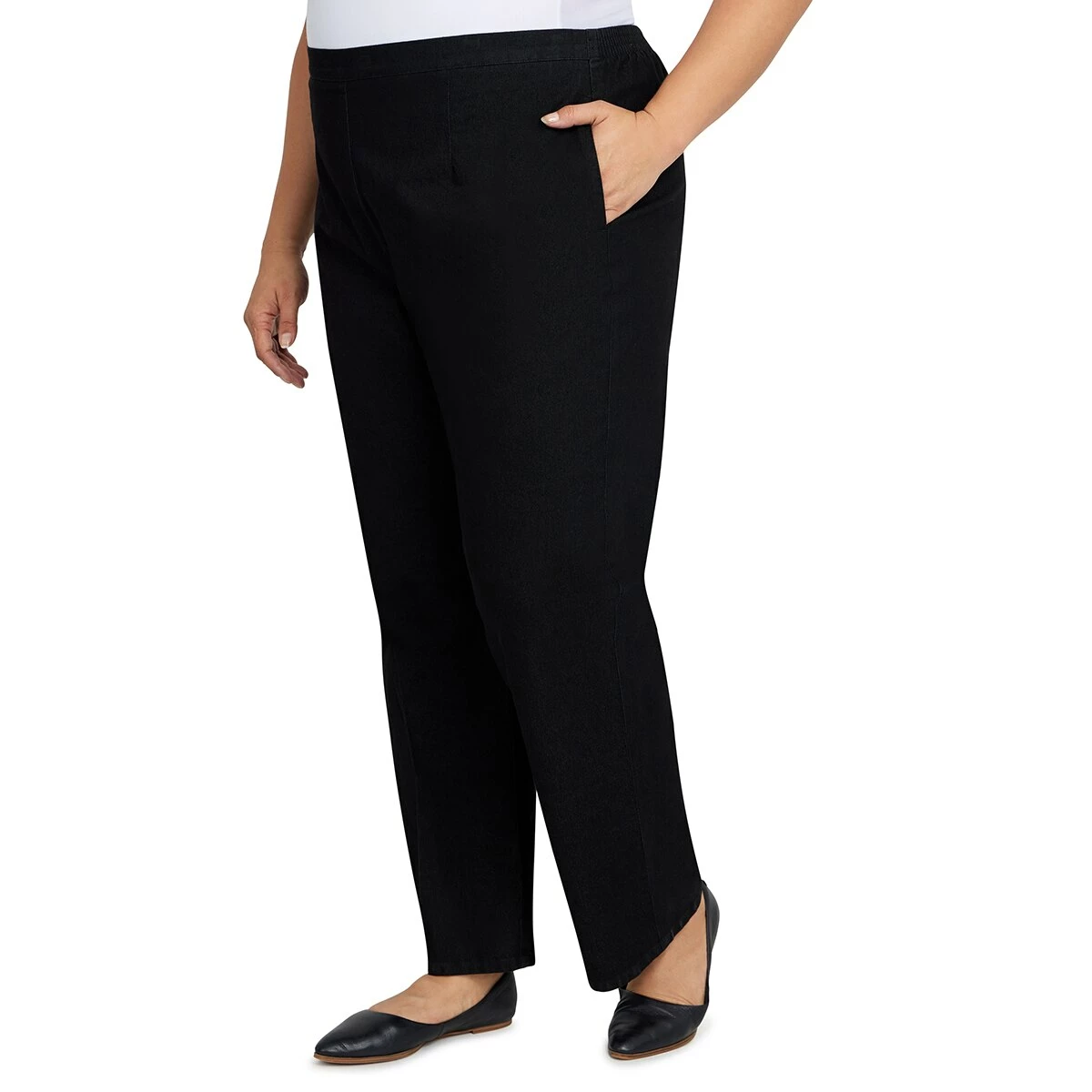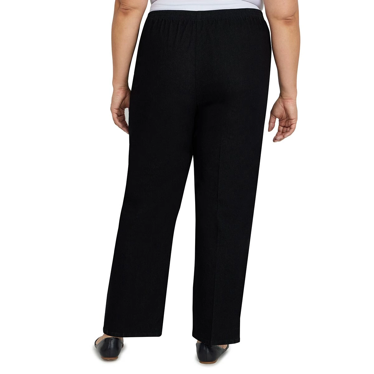 Plus Size Alfred Dunner Checking In signature fit short-length denim pant is designed with a flat-front waistband, elastic back, and side seam pockets. This jean is endlessly versatile.