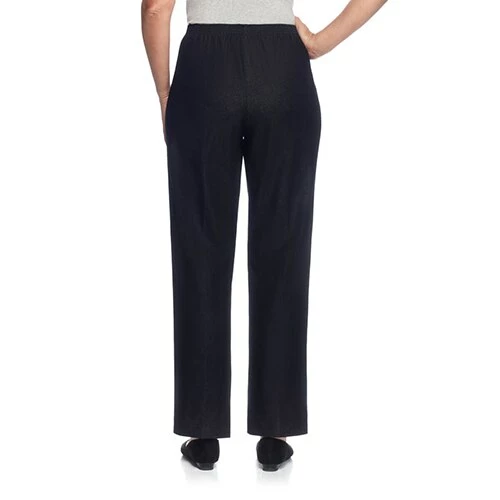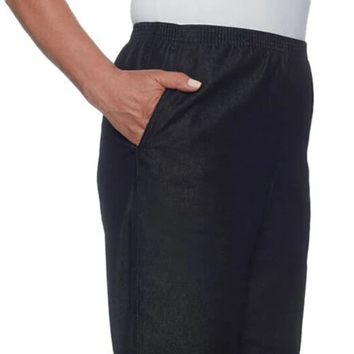 Elevate your casual wardrobe with this Plus Size Alfred Dunner Classics denim casual pants. These pull on solid stretch bottoms offer an elastic waist and front pockets.