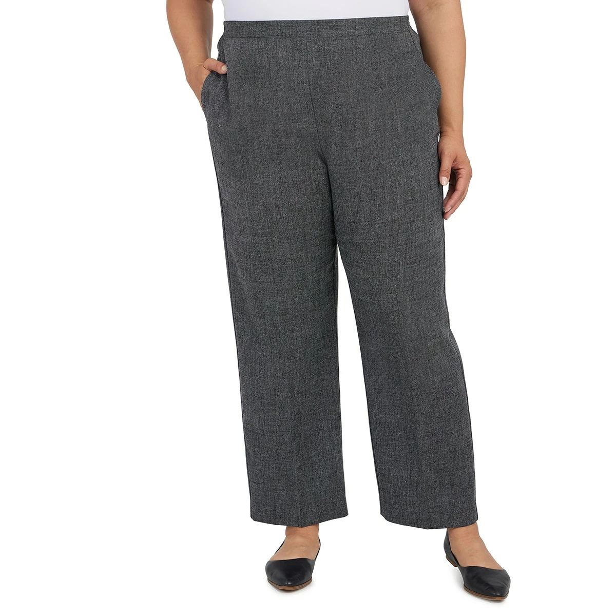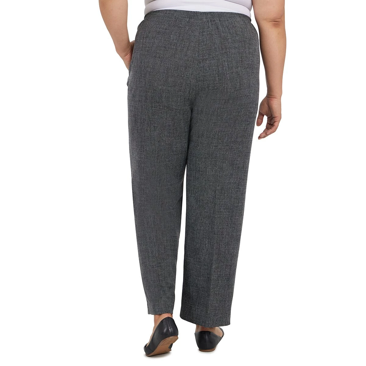 Our Plus Size Alfred Dunner Theater District melange pants designed in our classic fit have arrived for the season. Features a flat-front waistband, elastic back, and side seam pockets.