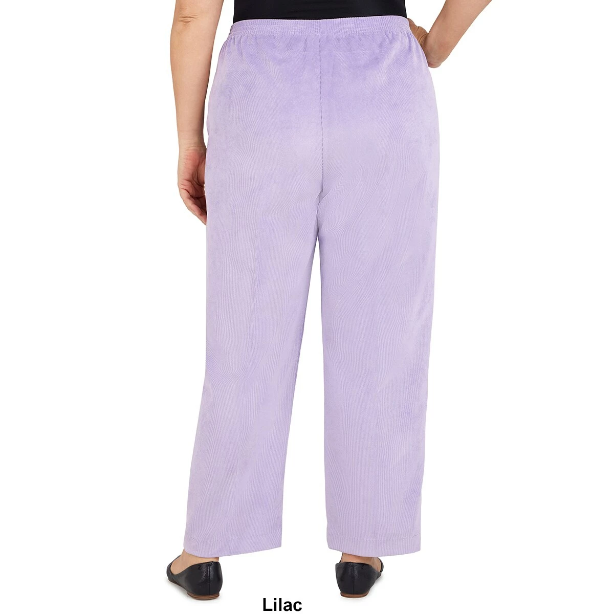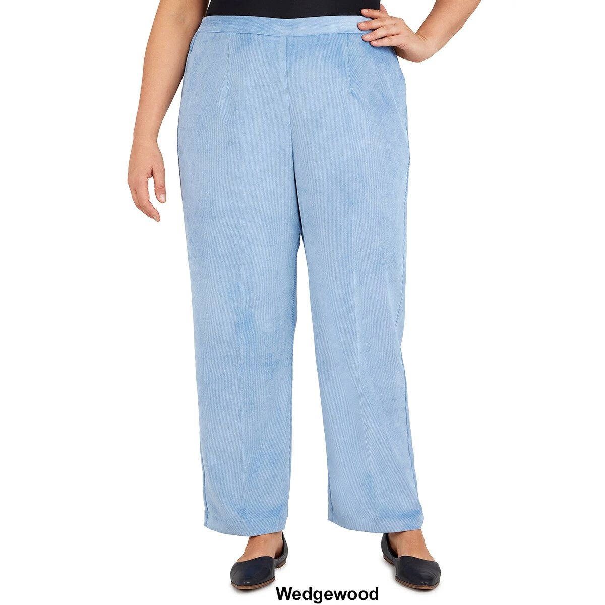Our Plus Size Alfred Dunner Victoria Falls proportioned classic fit pant is designed in soft corduroy fabric with a flat-front waistband, elastic back, and side seam pockets.