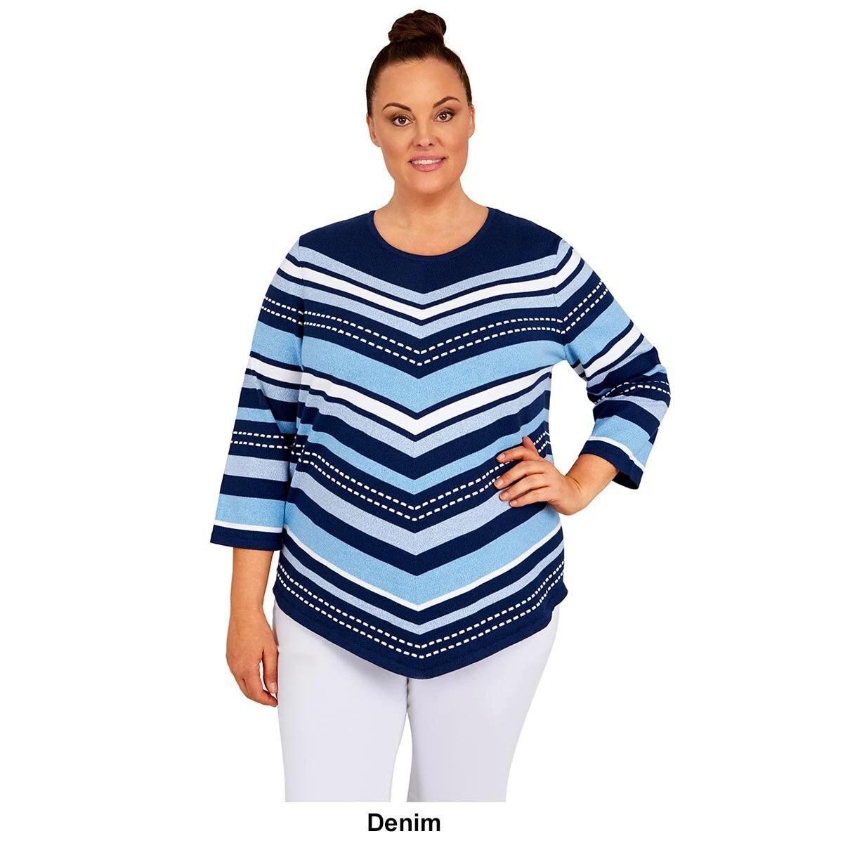 The Plus Size Alfred Dunner Classics chevron sweater is designed with a unique texture that’s perfect for cooler days. This lightweight style features 3/4 sleeves, a crew neckline, and a figure-flattering v-shaped hem.