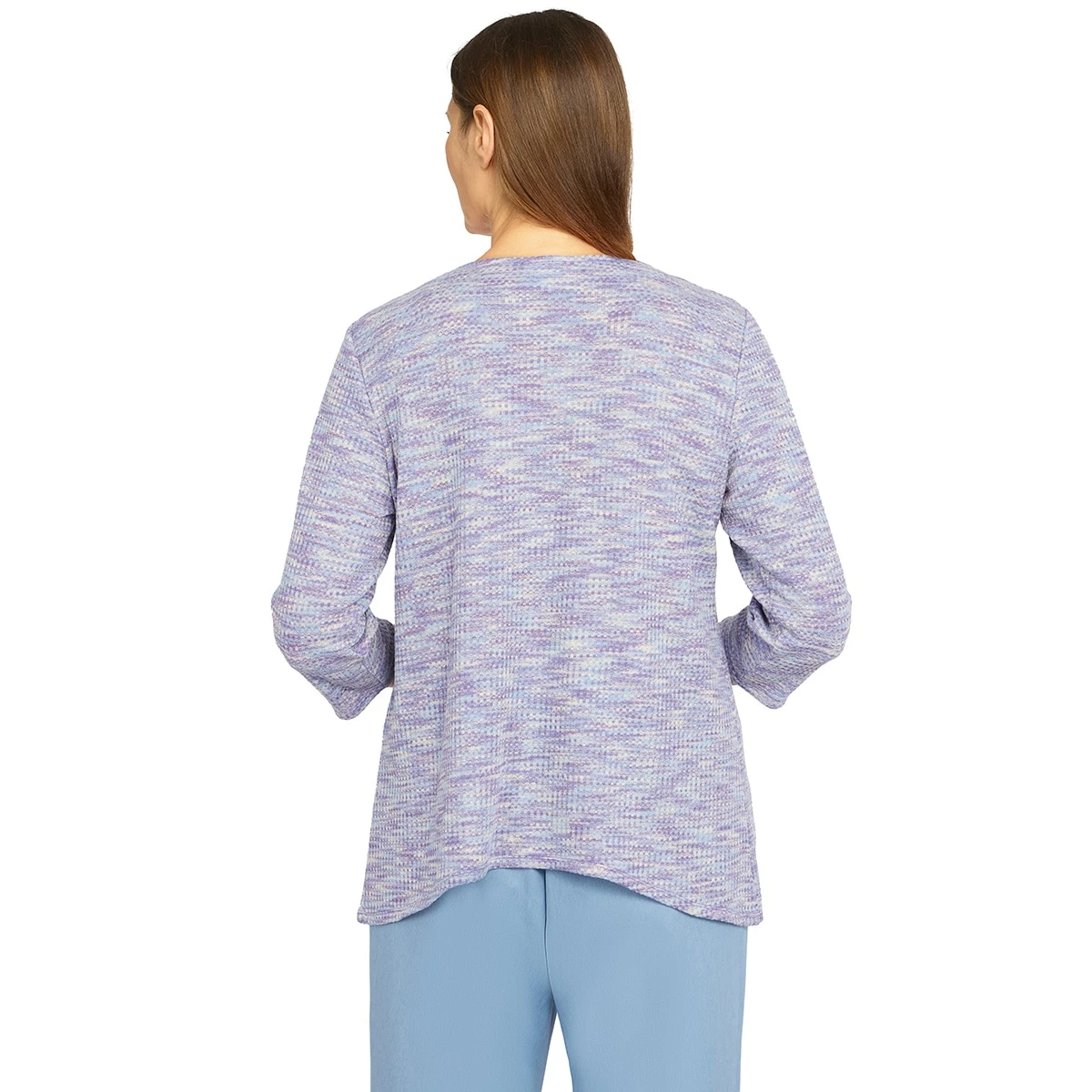 This Petite Alfred Dunner Victoria Falls texture knit top is a pretty addition to your fall wardrobe. Features 3/4 sleeves, a shark bite hemline, and a detachable necklace at the round neck.