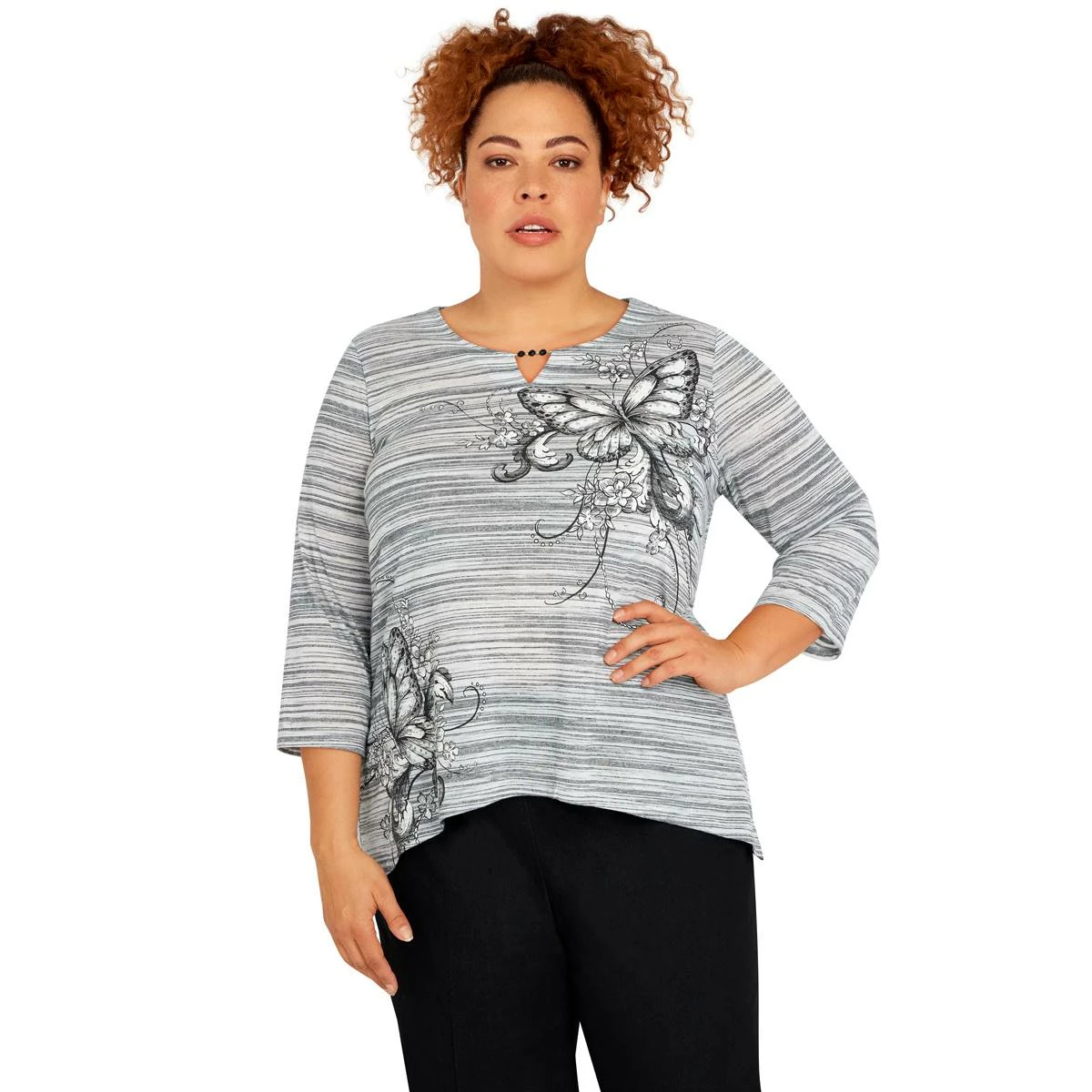 Stay fashionable in this Plus Size Alfred Dunner Checking In scroll space knit blouse.