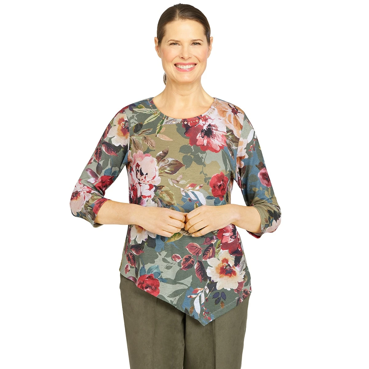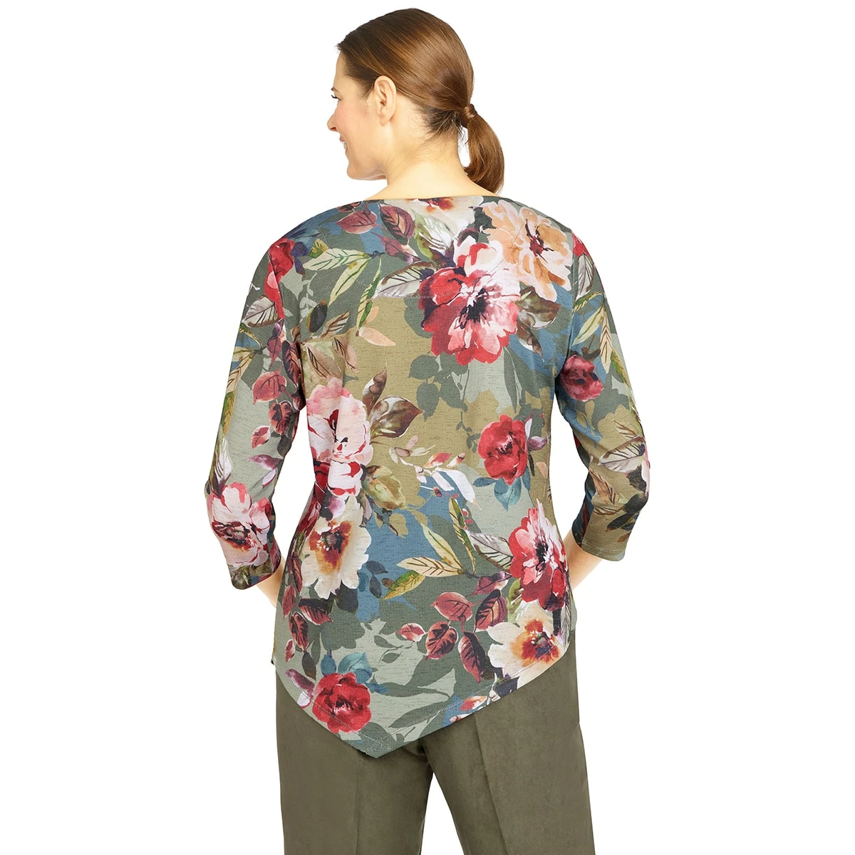 Are you looking for a top that will flatter your figure and make you feel confident? Look no further than our Plus Size Alfred Dunner Copper Canyon floral blouse that features a round neckline, and 3/4 sleeves that will have heads turning. Dressing up or down, this top is perfect for any occasion.