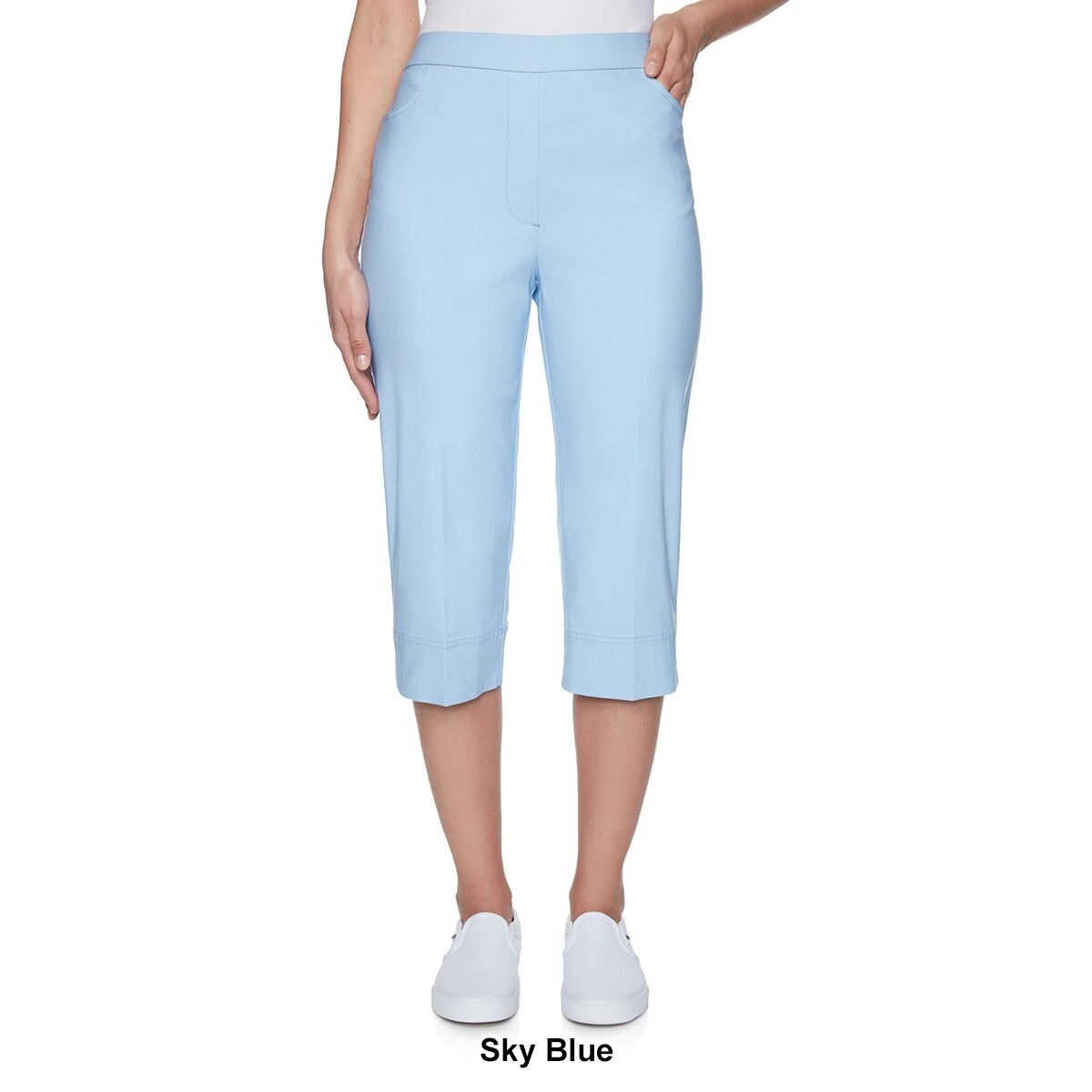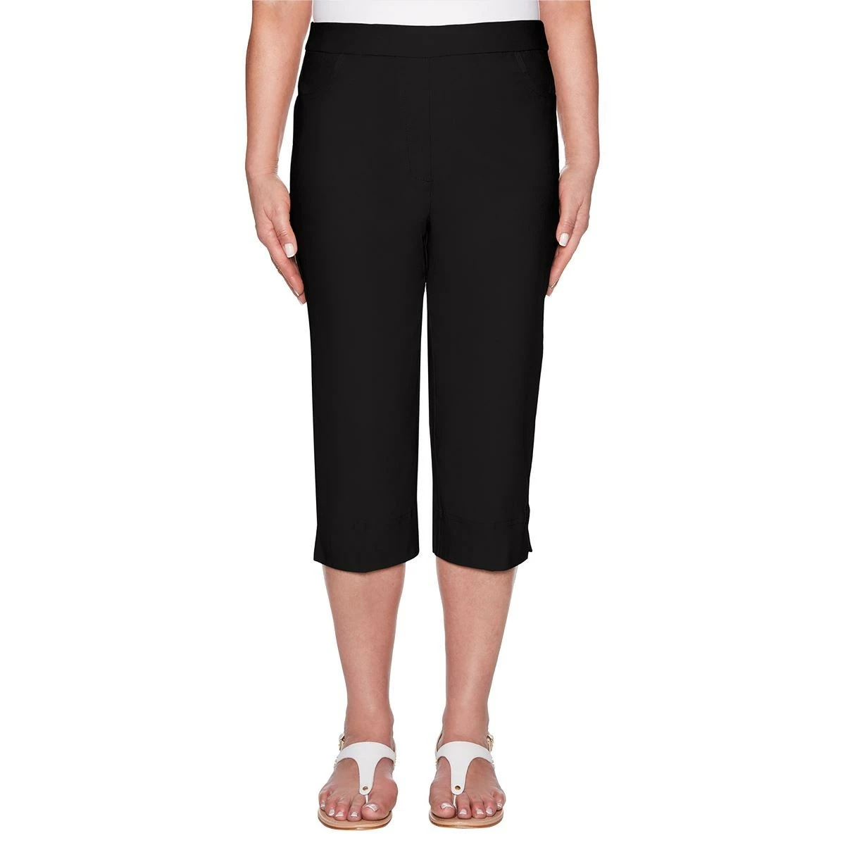 Wrap yourself up in the comfortable design of these solid Womens Alfred Dunner Classics capri pants. These pull-on bottoms offer a wide waistband, a slim leg, and a comfortable fit.