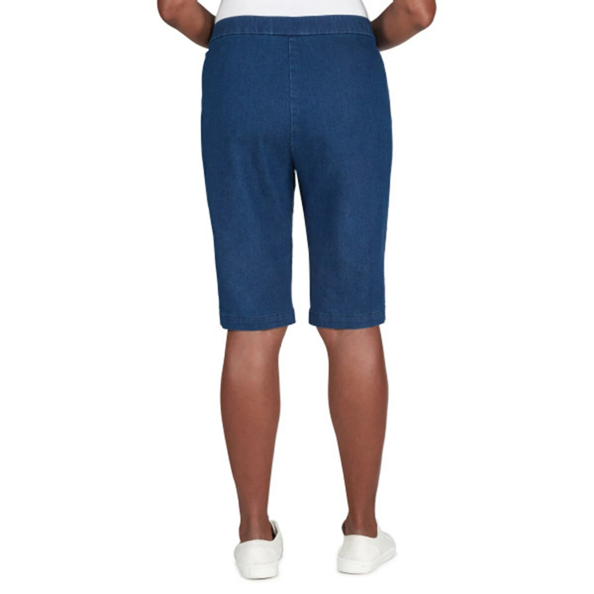 Our unique super stretch denim fabric gives this Womens Alfred Dunner Classics bermuda short a modern fit that contours the thigh and instantly slims your figure. Designed with a clean elastic comfort waistband and side slits.