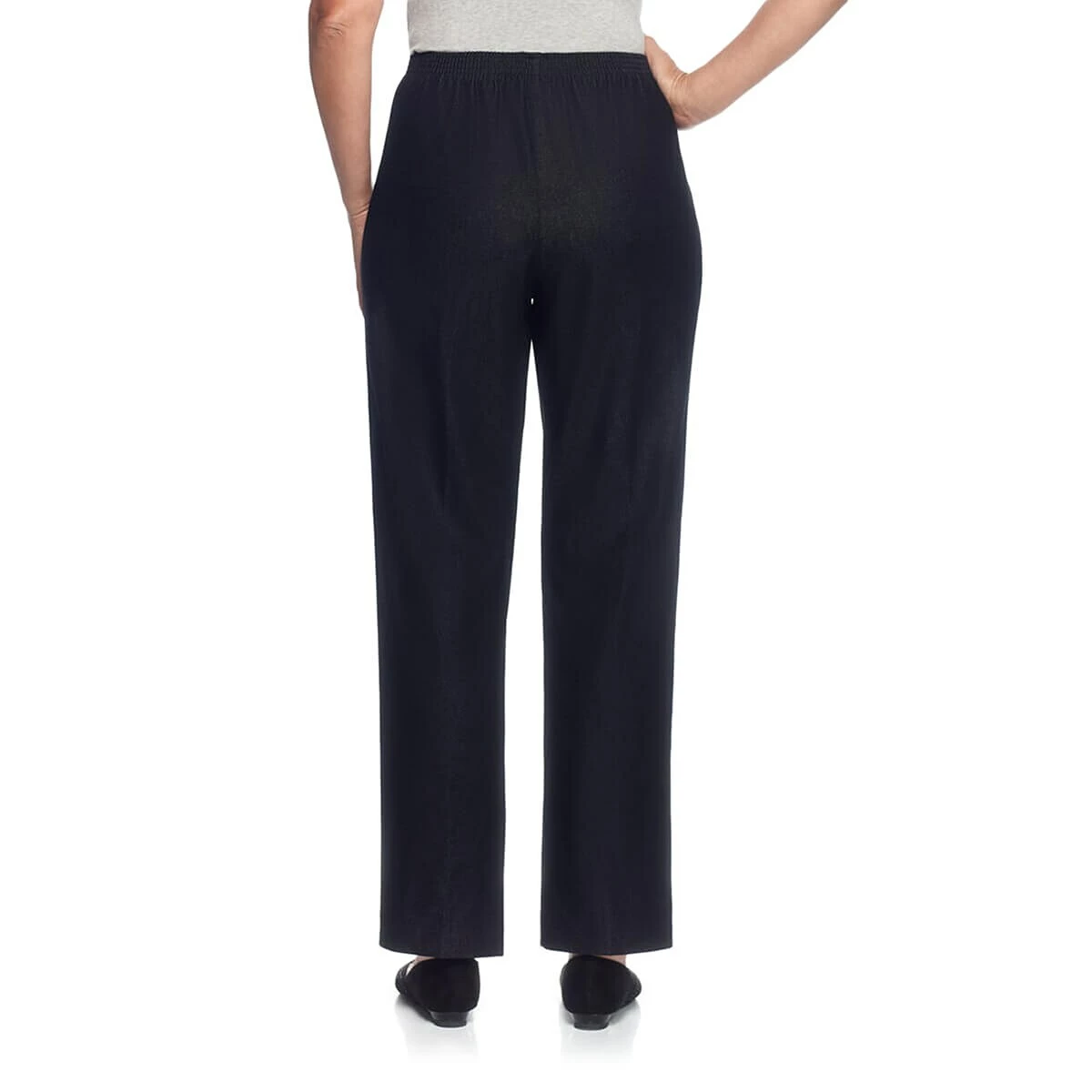 A timeless classic, this Womens Alfred Dunner Classics proportioned pants arrive in the traditional fit with an all-around elastic waistband and trouser pockets. These solid bottoms are made from easy wear, easy care fabric.