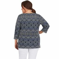 New 👍 Alfred-Dunner Tops 👩 Womens Alfred Dunner Key Items 3/4 Sleeve Stencil Floral Knit Top ❤️