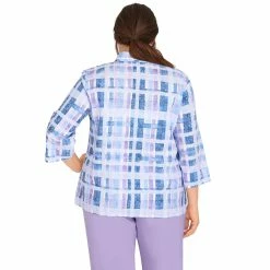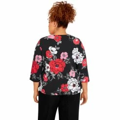 Best Sale ❤️ Alfred-Dunner Tops Plus Size Alfred Dunner Checking In Knit Floral Bouquets Blouse ⭐