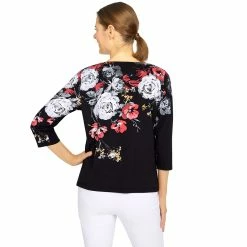 Budget ๐ Alfred-Dunner Tops Petite Alfred Dunner Empire State Drama Floral Yoke Neck Top ๐งจ